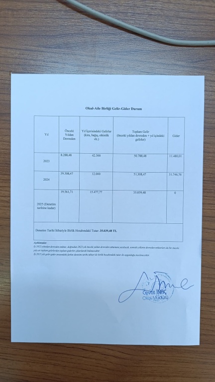 2024-2025 Okul Aile Birliği Gelir-Gider Durumu